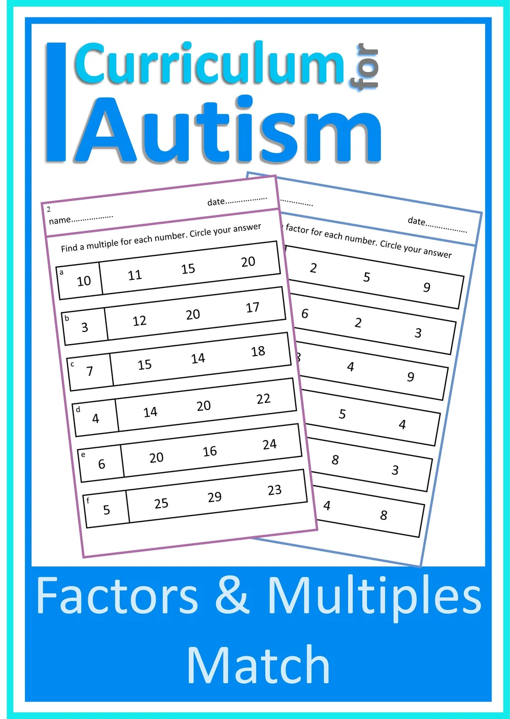Autism Math Factors & Multiples Match Worksheets Special Education Resource Classroom Homeschool — Curriculum For Autism
